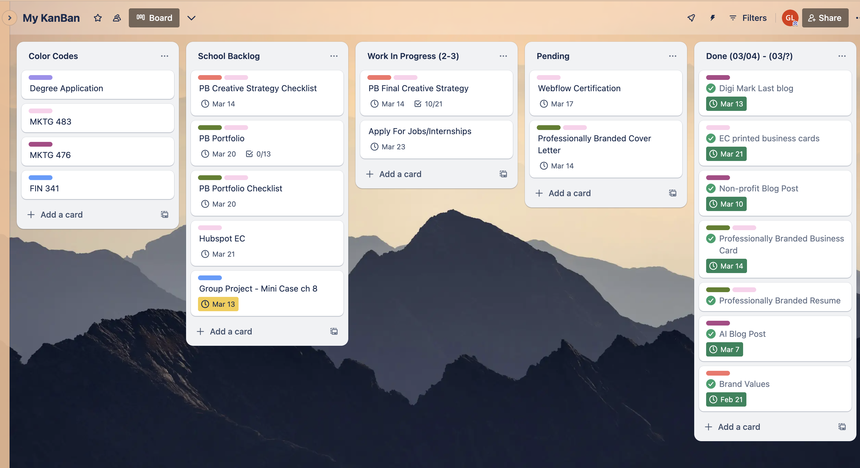 Here’s a snapshot of how I organize my workflow using Kanban: